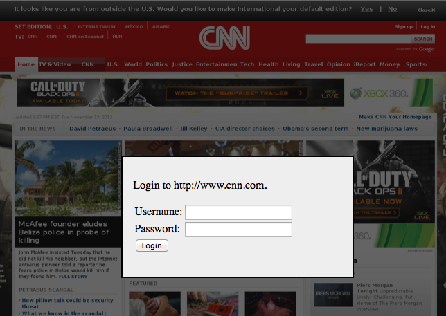 The phishing site has a simple CSS popup box that asks for credentials and has a picture or iframe of the actual site in the background. Once the credentials are entered the victim is redirected to the actual site.